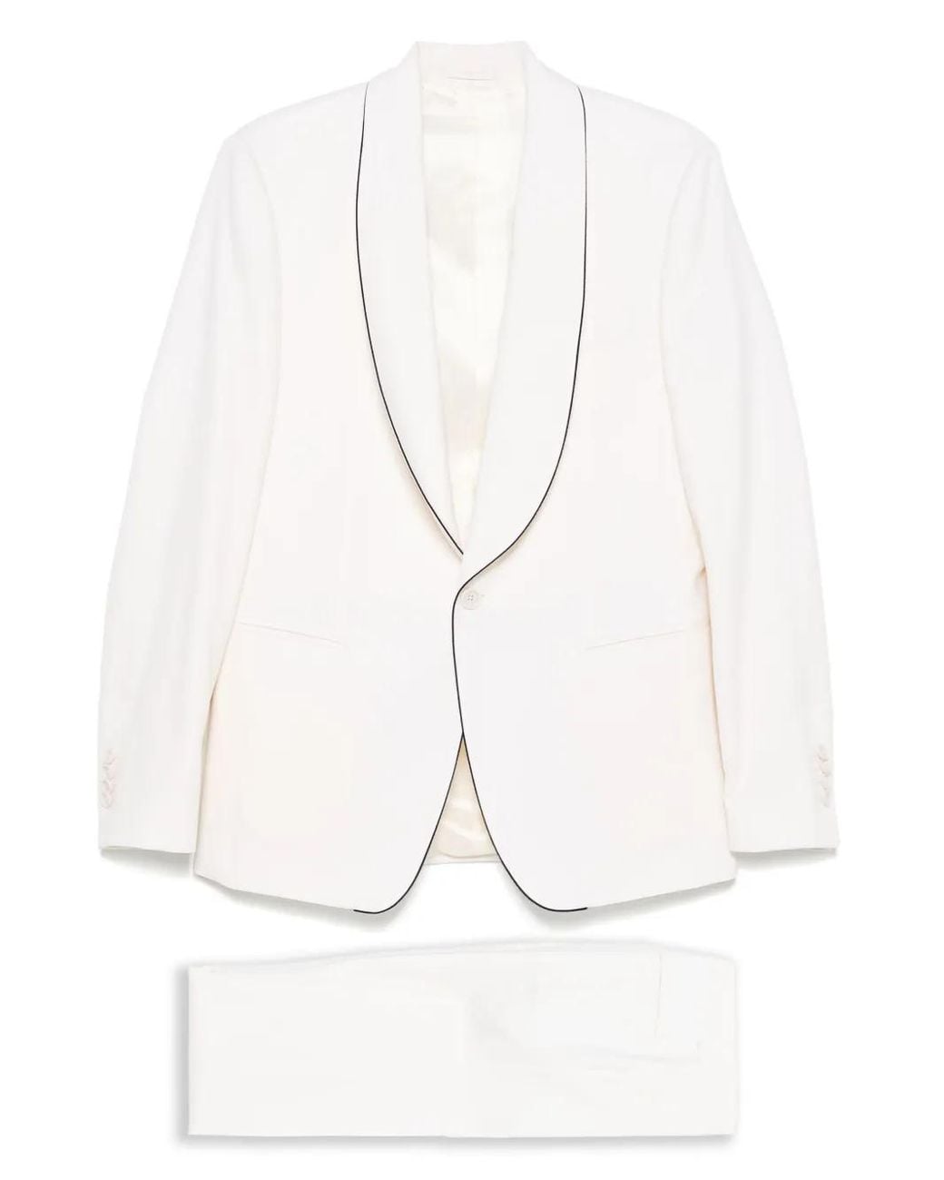 Light beige front button fastening concealed front button, hook and zip fastening English rear vents internal jetted pocket Size: 48. Gender: Male. Material:Elastane/Viscose/Virgin Wool/Cupro. Colour: white