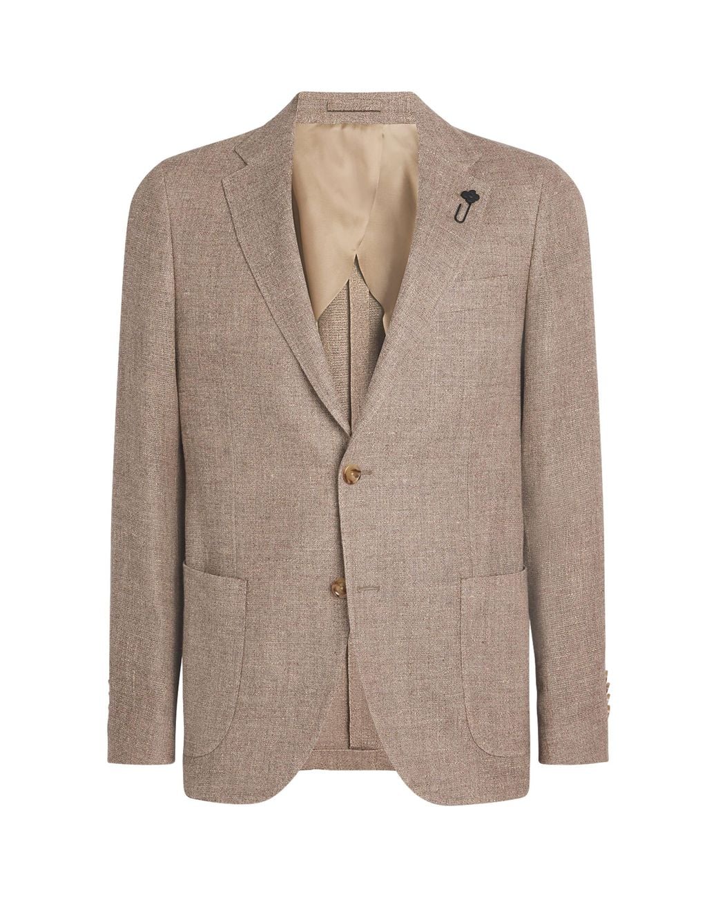 Men's Brown Linen-Wool Patch Pocket Blazer