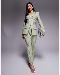 Blazer by Lavish Alice You choose the occasion One-shoulder design Single sleeve Double-breasted style Ruffle trims Slim fit Close-fitting cut. Colour: white
