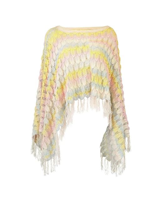 Beige and multicoloured knitted fringe detailing scalloped hem open knit Size: One Size. Gender: Female. Material:Cotton/Acrylic/Recycled Polyester. Colour: white