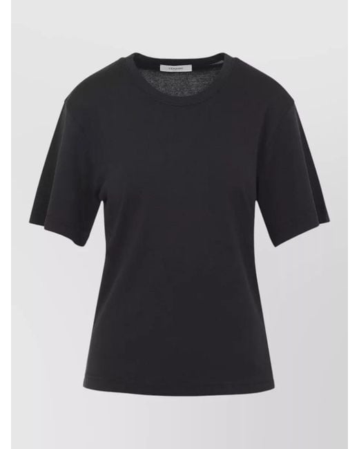 Women's Black Cotton Ribbed Short-Sleeve T-Shirt