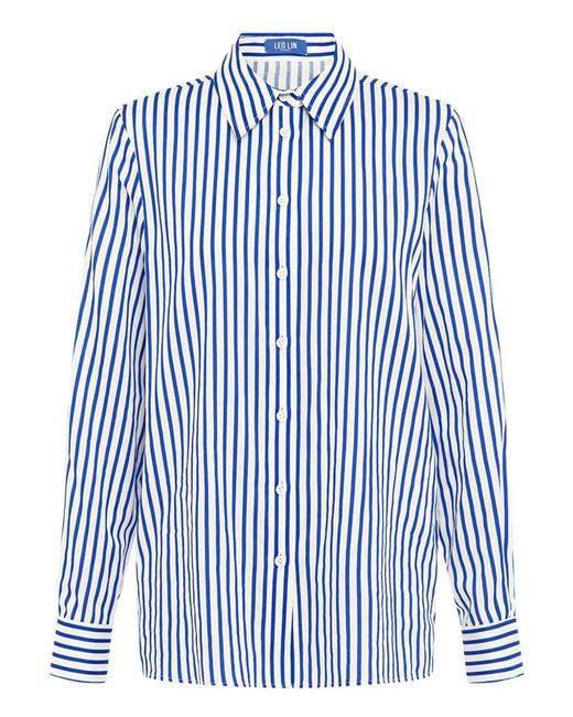 Navy blue striped pattern button fastening long sleeves buttoned cuffs classic collar Size: 2. Gender: Female. Material:Cotton. Colour: blue