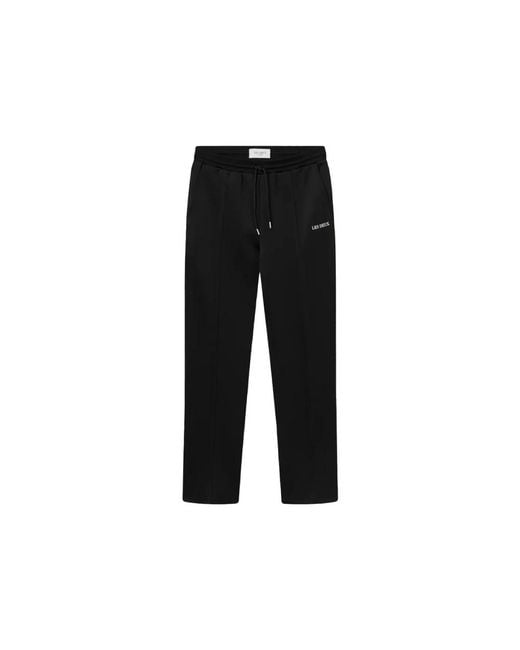 Les Deux Ballier Casual Track Trousers combine pressed creases with a relaxed sweatpant silhouette to deliver a smart, urban look that works for casual outings and active days. Key attributes: Black | Noir | Polyester | Stretch | Elastic drawstring waist | Side pockets | Brand lettering on front and back | Pressed creases | Relaxed silhouette | Double-faced technical jersey | Dimensions & fit: Relaxed fit | Composition & care: 92% Polyester | 8% Elastane Colour: black