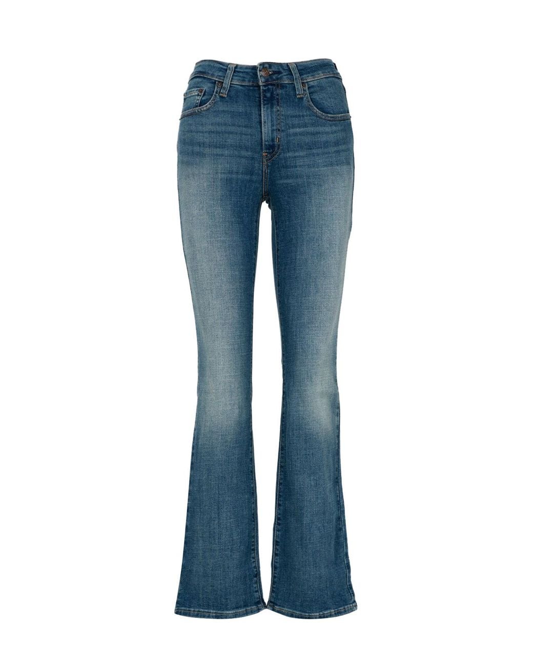 - Denim - Stretch - Five-pocket style - High waist with belt loops and Levi strauss label on the back - Zipper closure with flap and custom metal button - Red label applied to the edge of one back pocket - Bootcut leg - Iconic contrast stitching - Straight hem - Slim fit Colour: blue