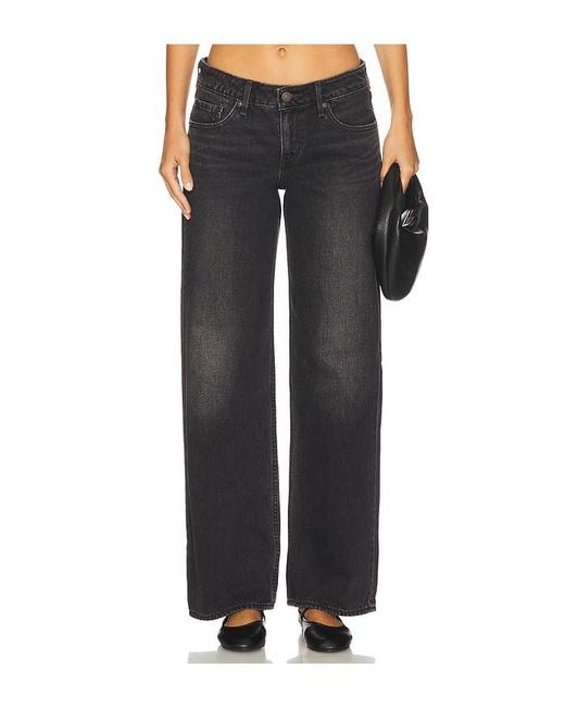 LEVI'S Low Loose Jeans in Black. Size 24. Also in 26, 25, 27, 28, 29, 31. LEVI'S Low Loose Jeans in Black. Size 26, 25, 27, 28, 29, 31. 100% cotton. Machine wash. Zip fly with button closure. 5-pocket styling. Subtle fading and whiskering at front. Structured denim fabric. 20 at the knee narrows to 18 at the leg opening. LEIV-WJ479. A5566-0027. Levi Strauss & Co., established in 1853, is a brand with a loyal, worldwide following. Their innovation with the co-invention of the blue jean was an integral part in creating their culture of self-expression and American cool that still resonates today. Each ready-to-wear design produced by the iconic label is made with special attention to craftsmanship, progress, and sustainability.