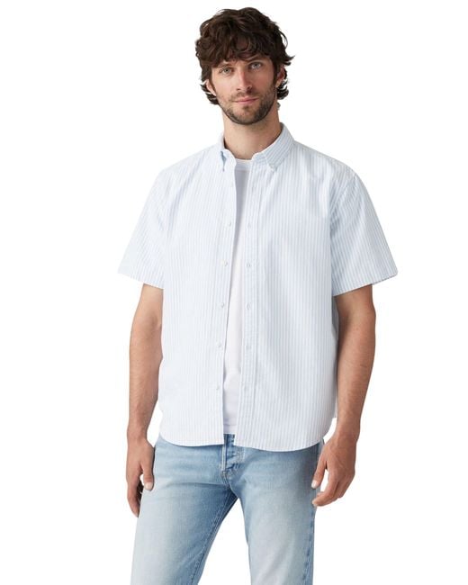 Men's White Short Sleeve Authentic Button-down Shirt Waylon Stripe Della Robbia Blue Blue L