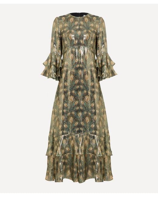 Women's Green Silk Lame Gala Dress