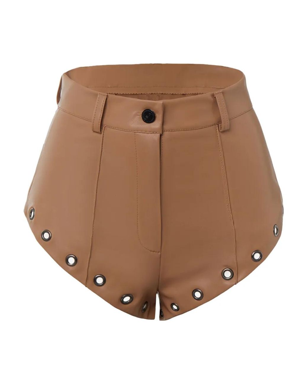Beige lace-up detail eyelet embellishment thigh length high waist Size: 34. Gender: Female. Material:Polyurethane/Polyester. Colour: brown