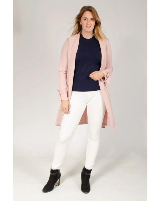For a smart outer layer for work or going out, this coat is a winner. Made from a fabulously soft stretchy crepe for the ultimate in comfort. Tie Belt finished with Silver Trim, Mock pockets with silver button. Comfort Stretch Polyester Fabric Zip Length: Mid-Length 35" Shoulder to Hem Sizing: As expected Fit: Classic. Colour: white