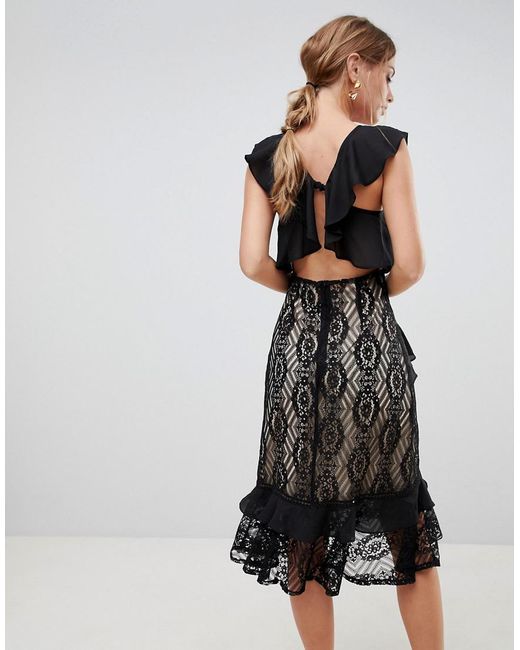 Dress by Liquorish, For that thing you have to go to, V-neck, Lace inserts, Ruffle trims, Open back, Zip-back fastening, Regular cut, Fits you just right. All-occasion label Liquorish have it all, from bodycon dresses to statement coats. Launched in launched in 2009, they soon became renowned for their stand-out prints, jacquards and hand-sequined pieces. We love their flowing kimono dresses, jackets and shifts. Polyester/ print. Colour: black