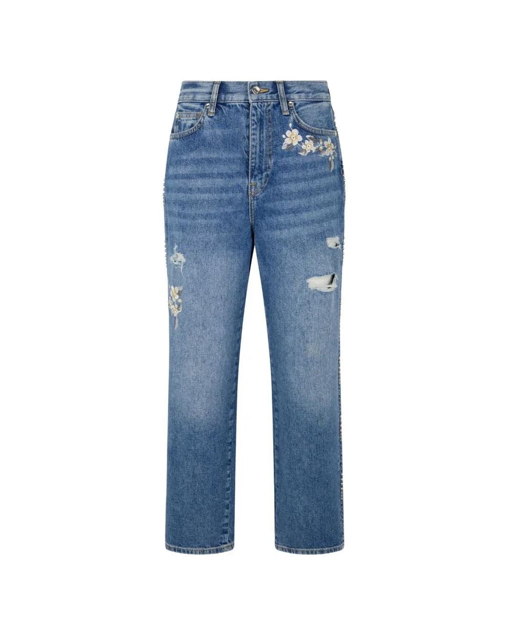 Blue cotton five pockets button closure Size: 24. Gender: Female. Material:Cotton/Cotton/Polyester. Colour: blue