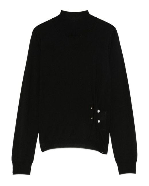 Women's Black High-Neck Pearly Accent Jumper