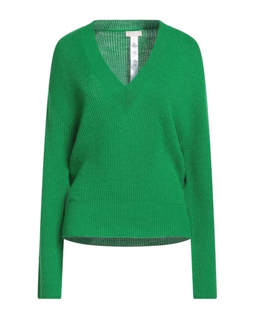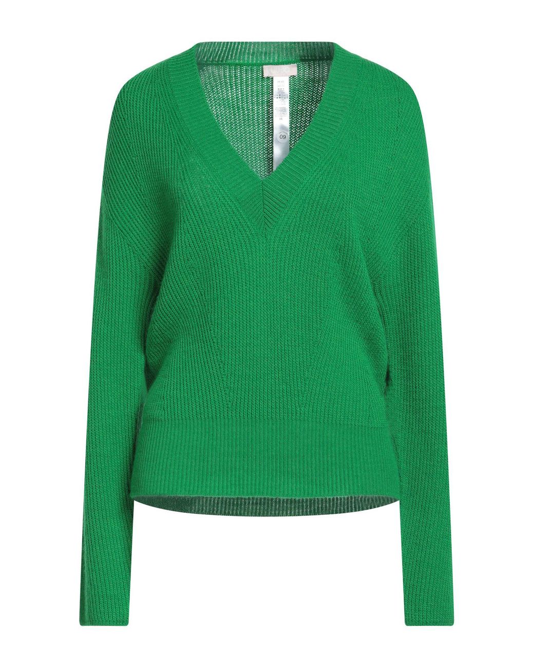 LIU •JO. ribbed-knit, lightweight knit, brand logo, plain colour, v-neck, long sleeves, hand wash or dry clean, do not bleach, do not tumble dry. 50% Acrylic, 50% Wool. Colour: green