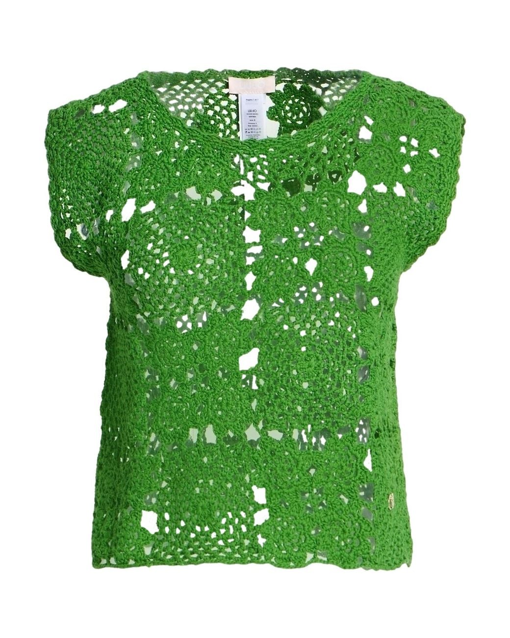 LIU •JO. crochet-knit, mid-weight knit, brand logo, plain colour, crewneck, sleeveless, hand wash, do not bleach, do not tumble dry. 100% Cotton. Colour: green