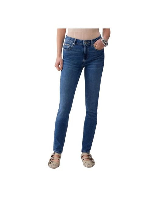 Liu Jo Skinny Jeans presented in a high-rise, skinny silhouette crafted for a close, streamlined fit. Designed for everyday wear, they combine stretch denim comfort with decorative detailing at the back pocket. Key attributes: Blue | Den blue | Cotton | Stretch fabric | Five pockets | Belt loops | Hidden zip and button closure | Skinny leg | High-rise waist | Washed/faded effect | Crystal-logo embellishment on back pocket | Contrast stitching | Dimensions & fit: High-rise | Skinny fit | Full length | Composition & care: Outer: 98% Cotton, 2% Elastane | Lining: 65% Polyester, 35% Cotton | Wash max 30°C (gentle cycle). Wash inside out and separately. Do not tumble dry. Iron at low temperature (max 110°C). Do not dry clean. Colour: blue