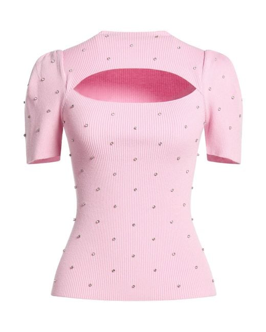 LIU •JO. ribbed-knit, lightweight knit, cutout, crystals, designer plaque, plain colour with appliqués, crewneck, short sleeves, machine wash, do not bleach, do not tumble dry. 80% Viscose, 20% Nylon.