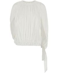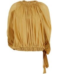 Go to YOOXTop Voile Solid colour Gathered Scoop neckline Short sleeves Dry clean Do not tumble dry Colour: black