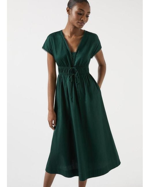 Women's Green Emi Pine Grove Cotton Scallop Trim Cotton Tie Detail Dress