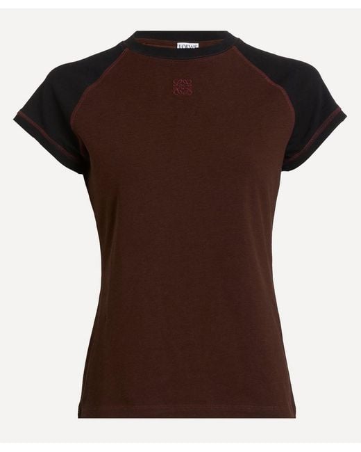 Channel decades of heritage with this vintage-inspired anagram t-shirt from Loewe. Crafted from a soft cotton jersey, it features a retro ringer style with short raglan sleeves, a classic crewneck, and a slim fit. The embroidered logo offers a subtle yet unmistakable mark of refined style. Colour: brown