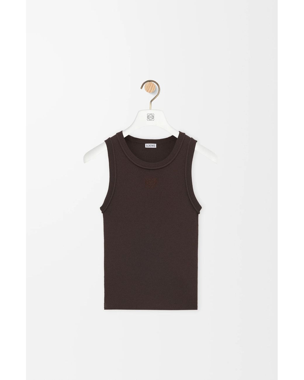 Top in lightweight ribbed stretch viscose. *Small fit, regular length *Round neck *Ribbed collar and armholes with rolling jersey details *Self-start hem *Anagram embroidery placed at the front Colour: white