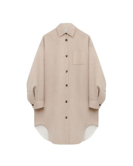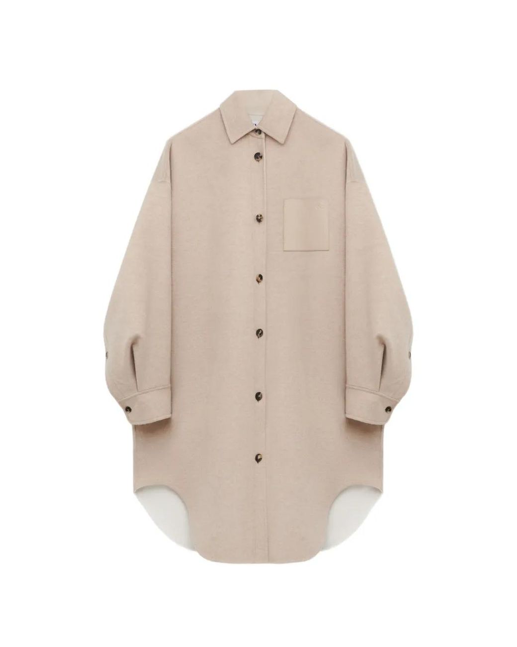 Beige button fastening front pocket long sleeves curved hem Size: 34. Gender: Female. Material:Wool/Cashmere. Colour: natural