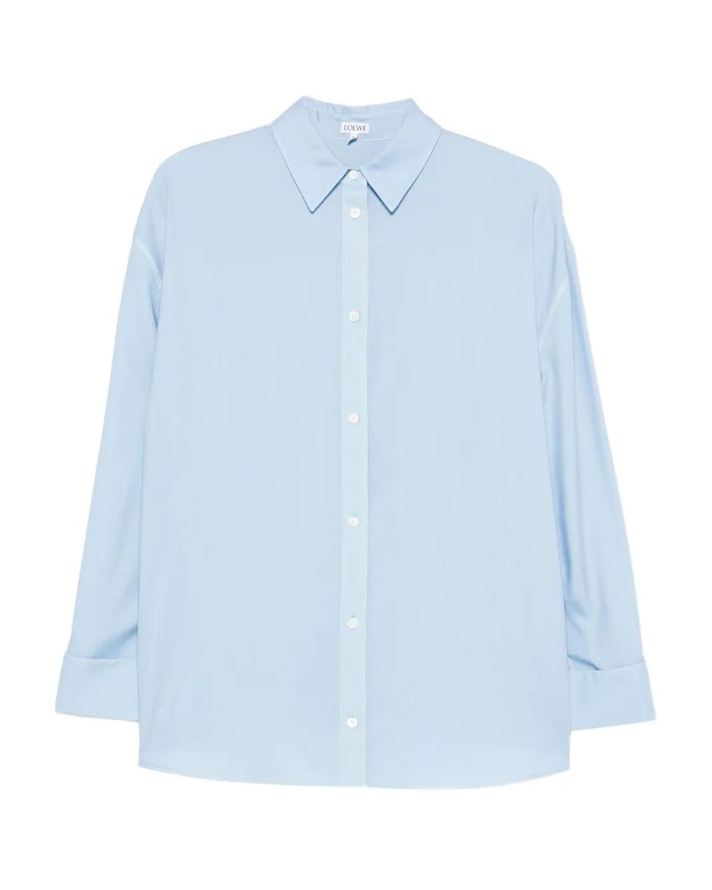Light blue button closure classic collar long sleeves cuffed sleeves Size: 34. Gender: Female. Material:Wool/Silk. Colour: blue