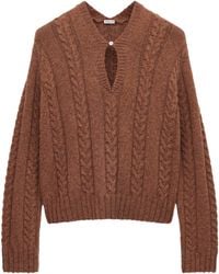 Loewe Women's Grey Cable-Knit Wool Jumper