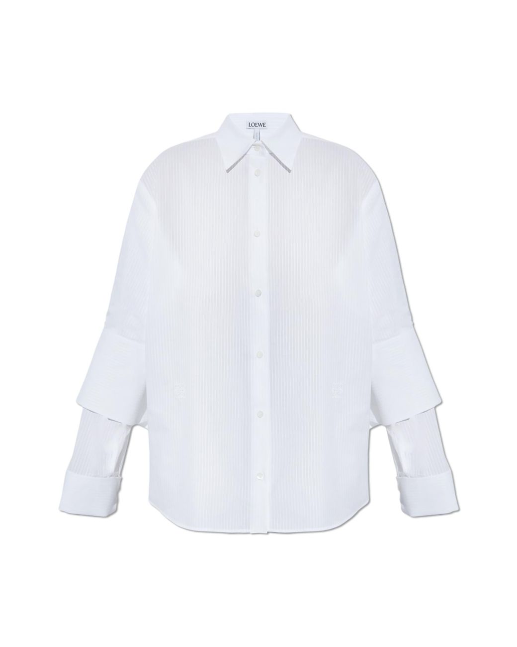 representing outstanding quality. WHY SHOULD YOU CHOOSE THIS PRODUCT? * Exquisite double cuffs with a unique gold accent * Sophisticated cut with a modern, oversized twist * Luxurious pinstriped cotton fabric * Design by the prestigious Loewe fashion house * Timeless white—universally versatile for any style Colour: white