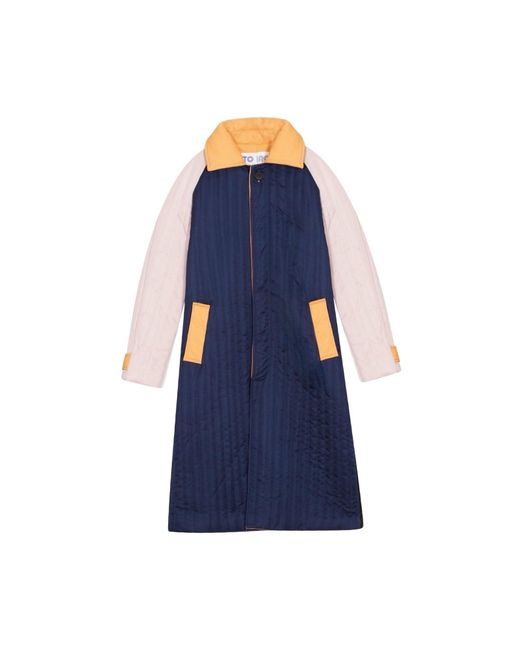 Women's Blue Neutrals Patchwork Colour Block Quilt Long Jacket