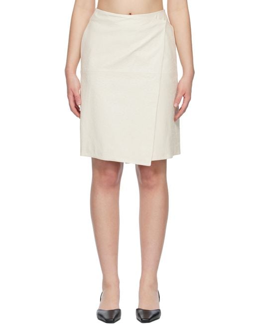 Women's Natural Off- Gora Ostrich-Effect Wrap Leather Midi Skirt