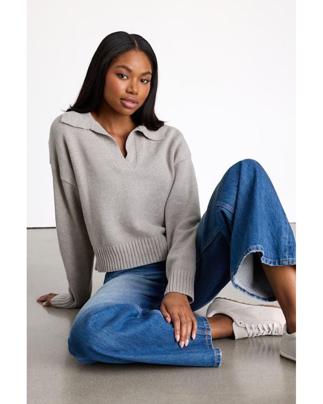 Women's Grey Cosy Forecast Collared Pullover Jumper