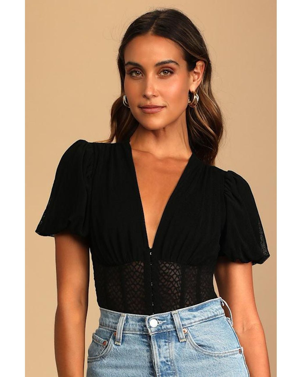 - Properly Trendy Mesh Puff Sleeve Bodysuit