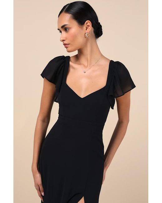 Women's Black Simply Delightful Tie-Back Flutter Sleeve Maxi Dress
