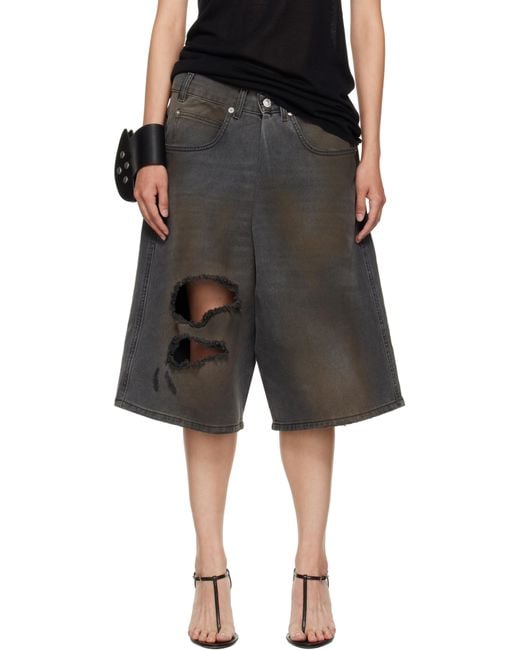 Non-stretch denim shorts. · Wide-leg · Fading, whiskering, smudging, and distressing throughout · Belt loops · Five-pocket styling · Pleat at zip fly · Logo patch at back waistband · Logo-engraved silver-tone hardware Supplier color: Dirty outcast grey Colour: black