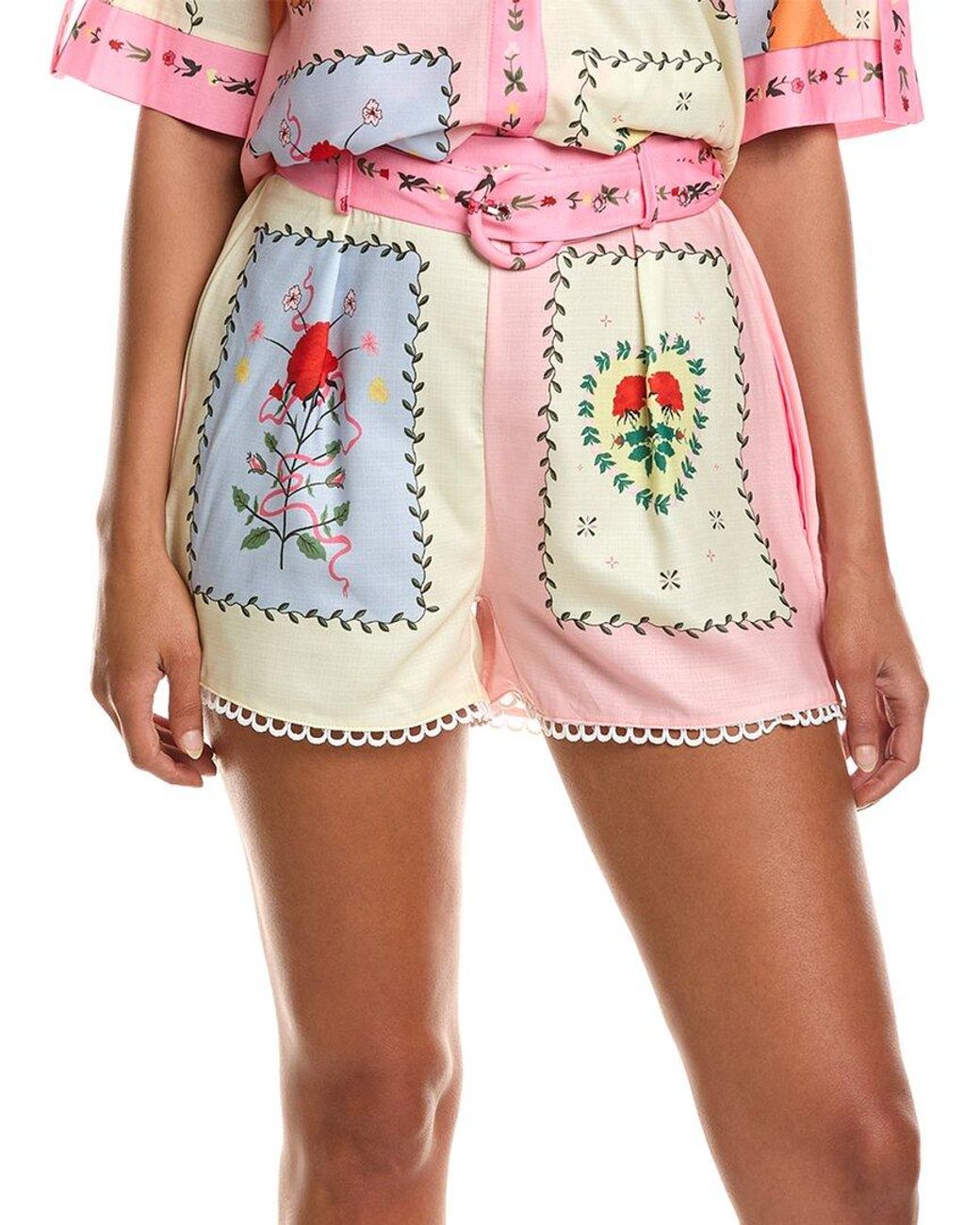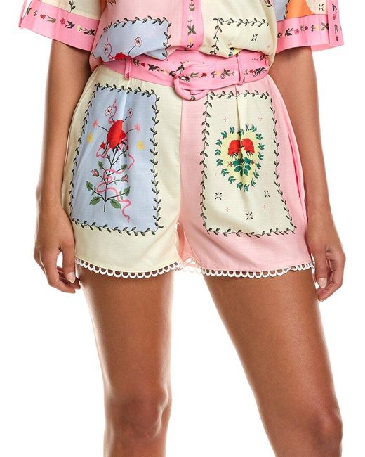 Color/pattern: multicolour Inseam approximately 3in; 12in rise Model is 5'9 and is wearing a size small. Measurements may vary slightly by size. Design details: elasticized back waist and front pockets 65% linen, 35% polyester Hand wash Imported Colour: red