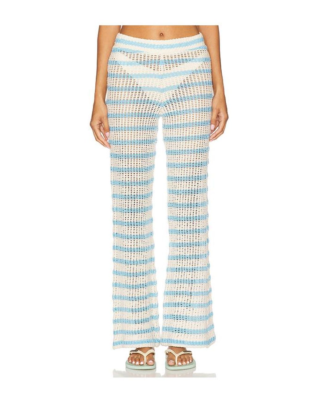 Maaji Calliope Pant in Blue,Ivory. Size L. Also in M. Maaji Calliope Pant in Blue,Ivory. Size M. Self: 60% cotton 40% polyester Lining: 78% polyamide 22% spandex. Hand wash cold. Pull-on styling with elastic waistband. Open crochet design. Garment is made with a semi-sheer fabric, undergarments can show through. Item not sold as a set. 25 at the leg opening. MAAJ-WP56. PT2716CPA002. Sisters Manuela and Amalia Sierra began pursuing their dream of creating a brand that would enchant us all with its unique inventiveness. The Maaji signature is built upon the unexpected mixture of prints, textures, cutting-edge silhouettes and the sweet, ubiquitous presence of details. The result: a one of a kind product, a real piece of art.