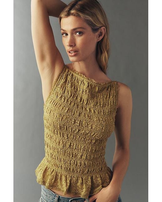 This sleeveless tank top features allover shirred detailing for a textured finish. The pullover silhouette is designed with generous stretch to ensure a comfortable, figure-hugging fit through the bodice. Shirred Tank Top by Maeve in Green, Women's Size: 2XS, Nylon/Elastane at Anthropologie Colour: brown