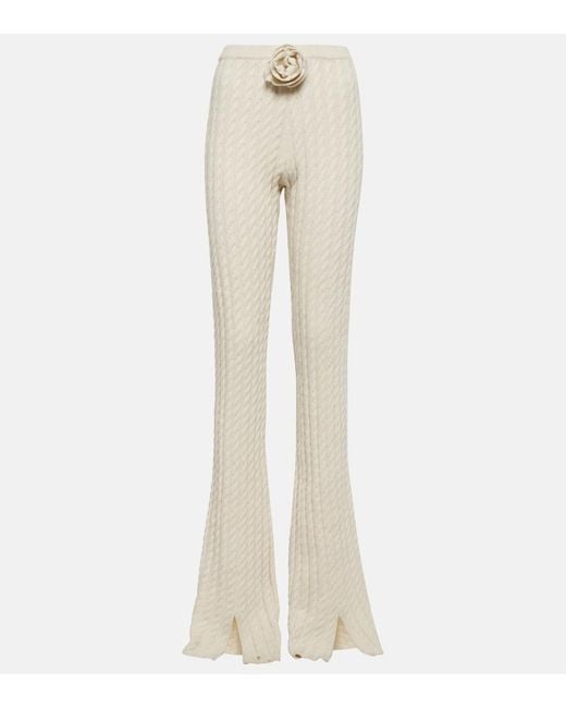 Women's Natural Floral-Applique Split-Hem Flared Trousers