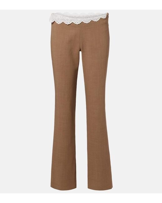 Women's Brown Lace-Trimmed Wool Straight Trousers