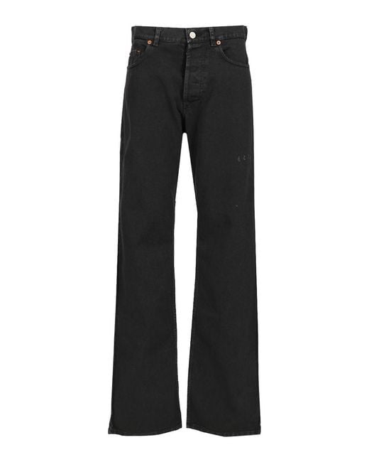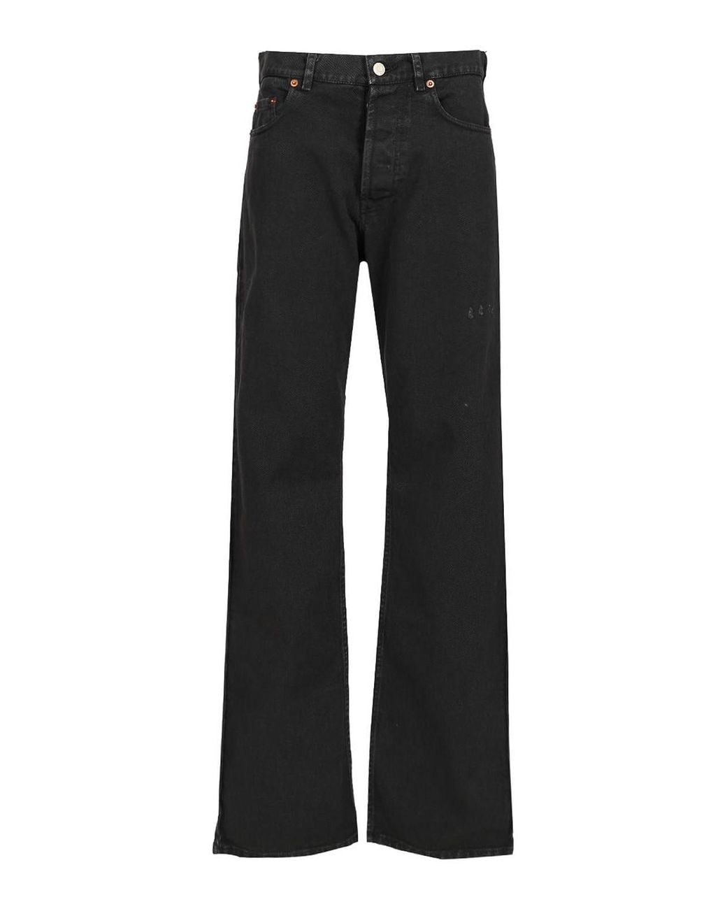 Livello broken bull denim jeans by magliano with button fastening and belt loops. ripped details and five pockets. Designer colour name: black Colour: black