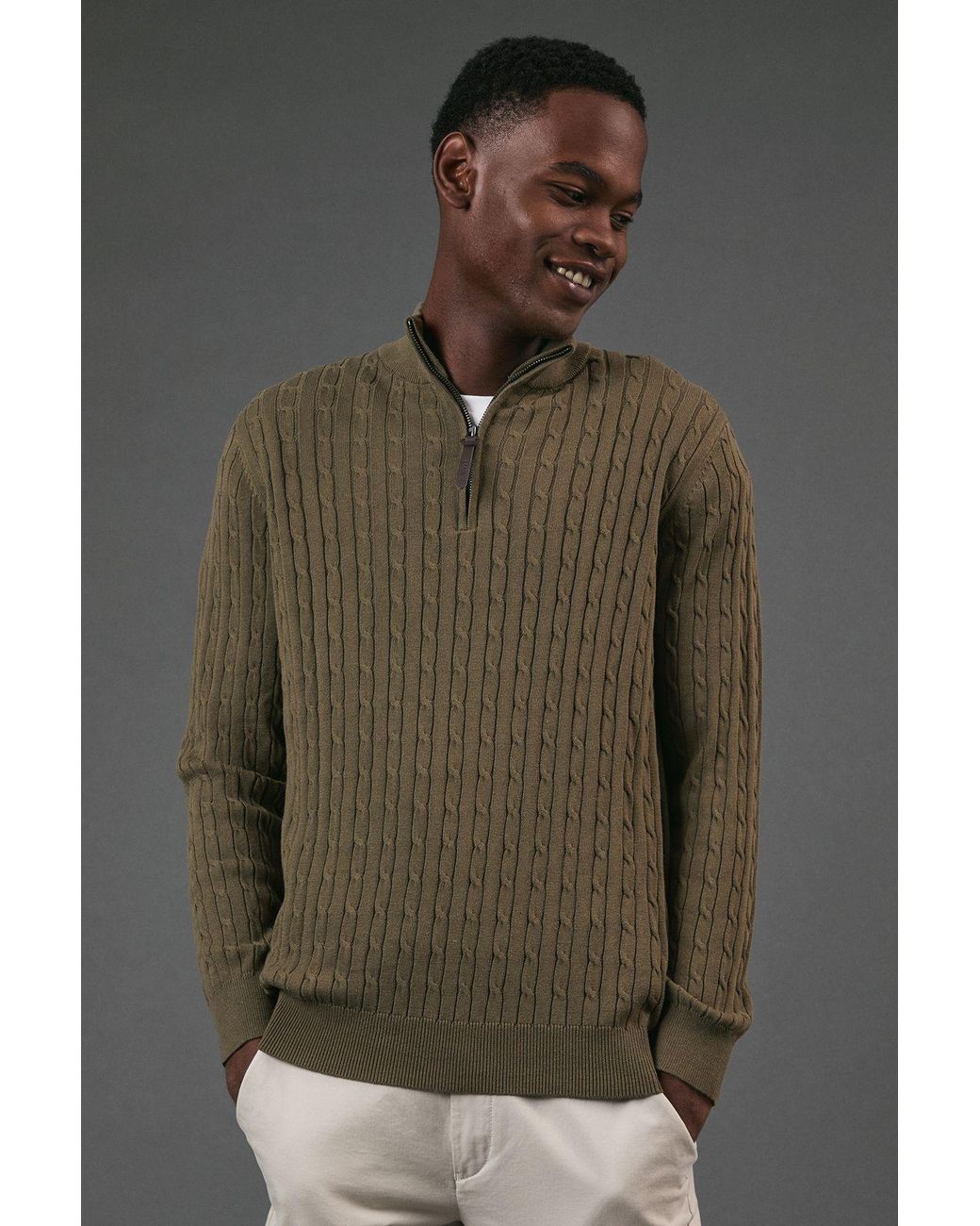 Men's Green Premium Pure Cotton Cable Half Zip Jumper