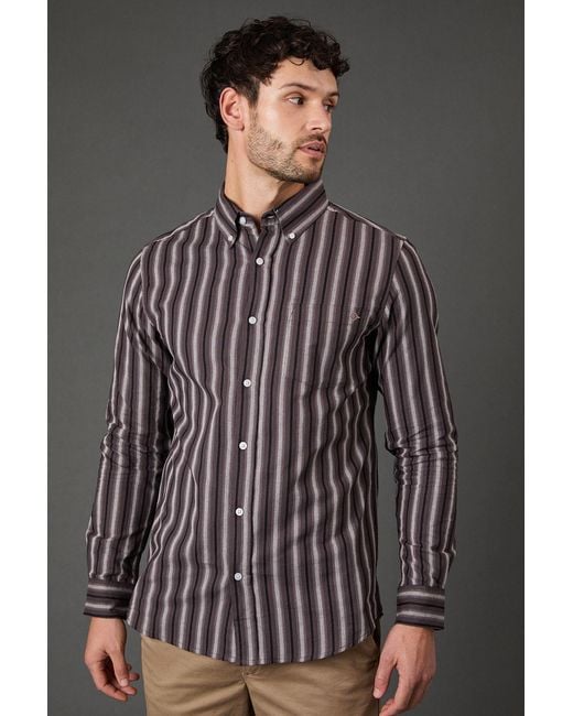 Men's Grey Stripe Long Sleeve Shirt Cotton
