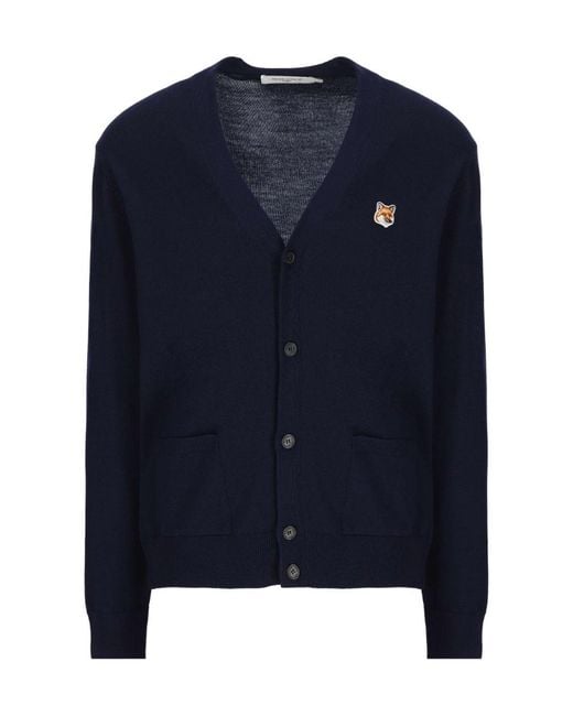 Men's Blue Maison Kitsuné V-Neck Long-Sleeved Cardigan
