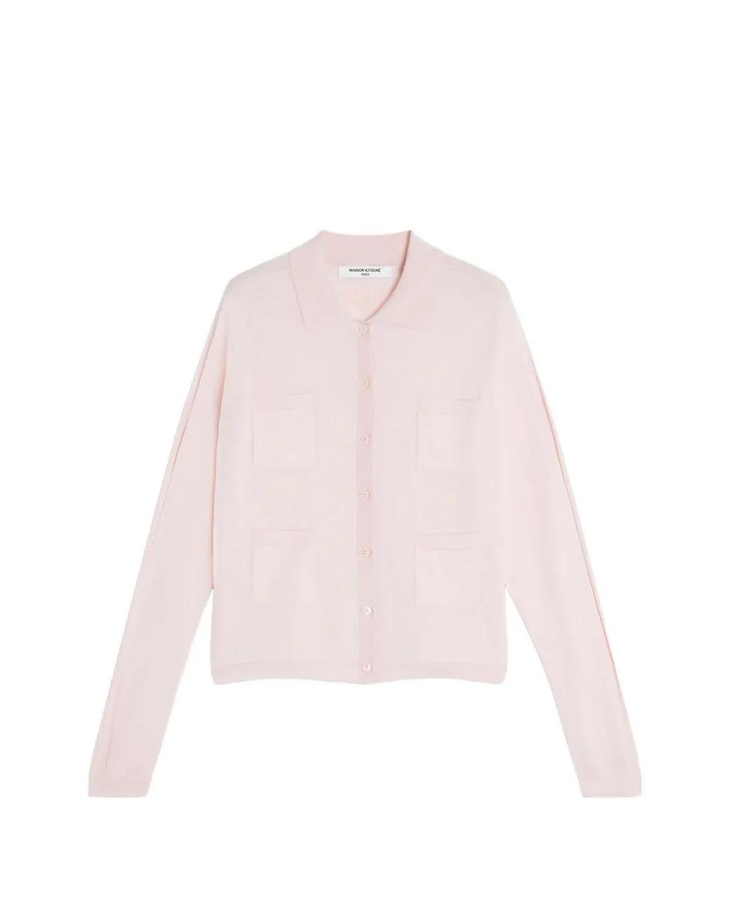 Light pink fine knit spread collar front button fastening long sleeves four front patch pockets ribbed hem tonal logo embroidery to the rear Size: XS. Gender: Female. Material:Triacetate/TENCEL™/Silk. Colour: pink