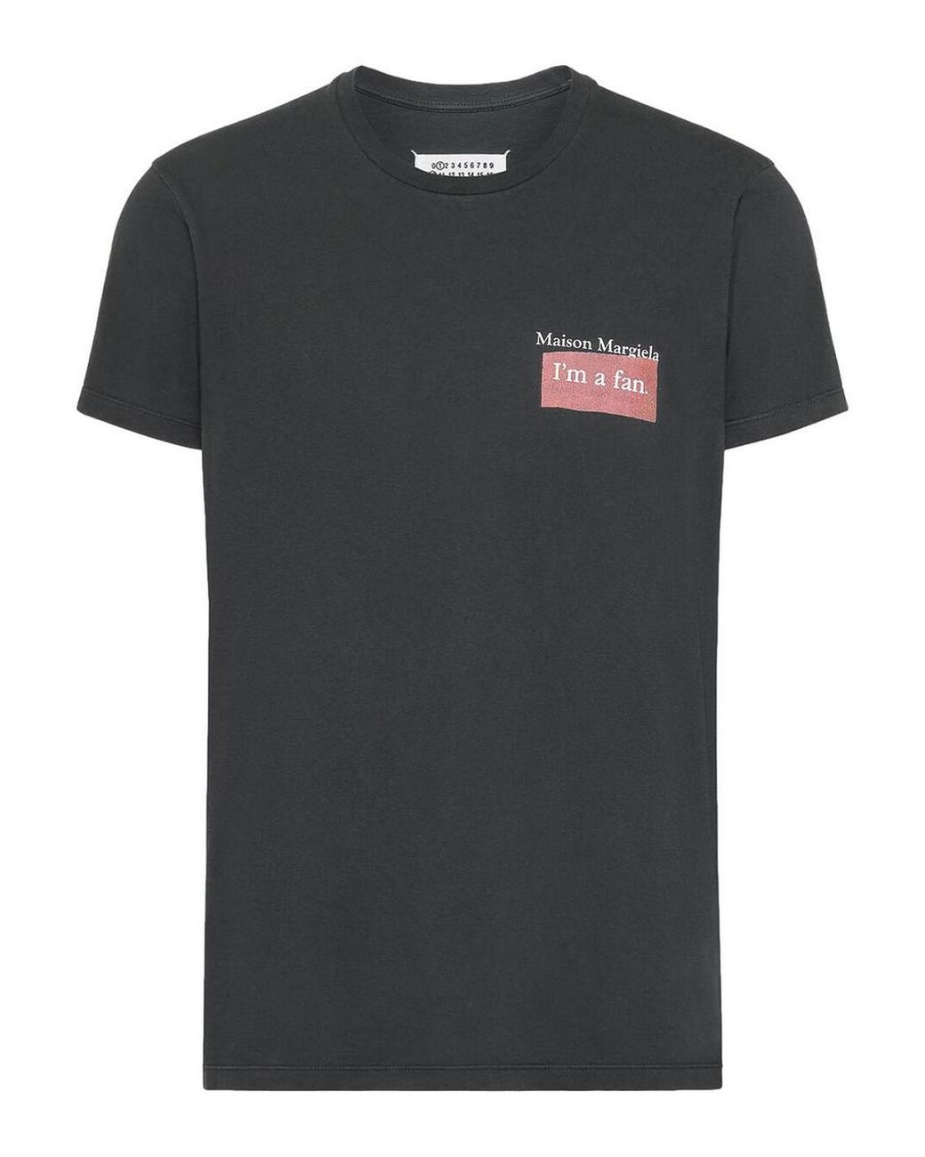 Designer color: charcoal, cotton, ring-spun jersey, crew neck, logo print and and im a fan at the chest, four stitches at the back, short sleeves, straight hem. Colour: black