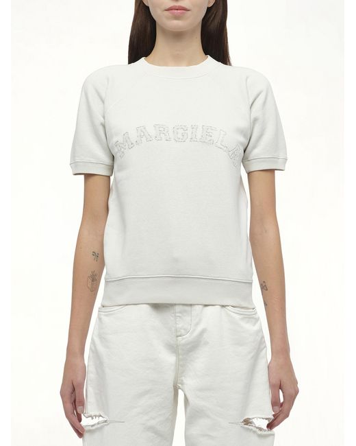 Women's White Margiela Short Sleeve Sweatshirt, 100% Cotton