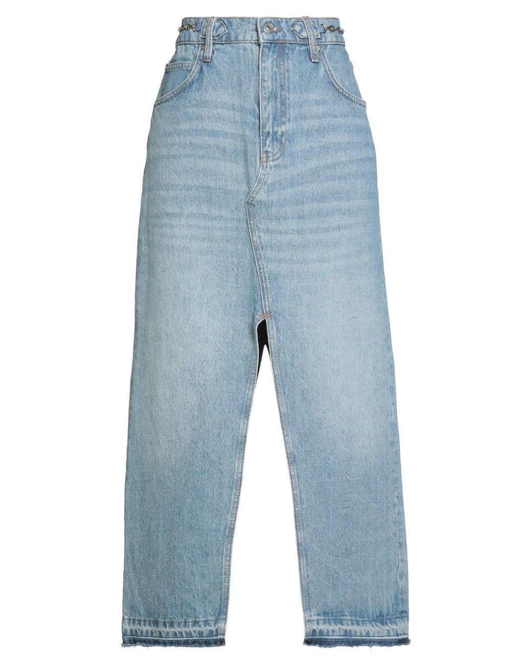 MAJE. flared skirt, denim, faded, plain colour with appliqués, embellished, light wash, zip fastening, 1 button, multipockets, machine wash or dry clean, do not bleach, do not tumble dry. 100% Cotton.