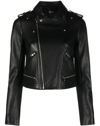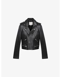 Maje Women's White Matelassé-Detailing Leather Biker Jacket