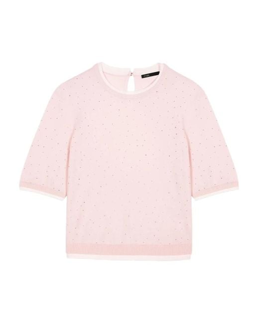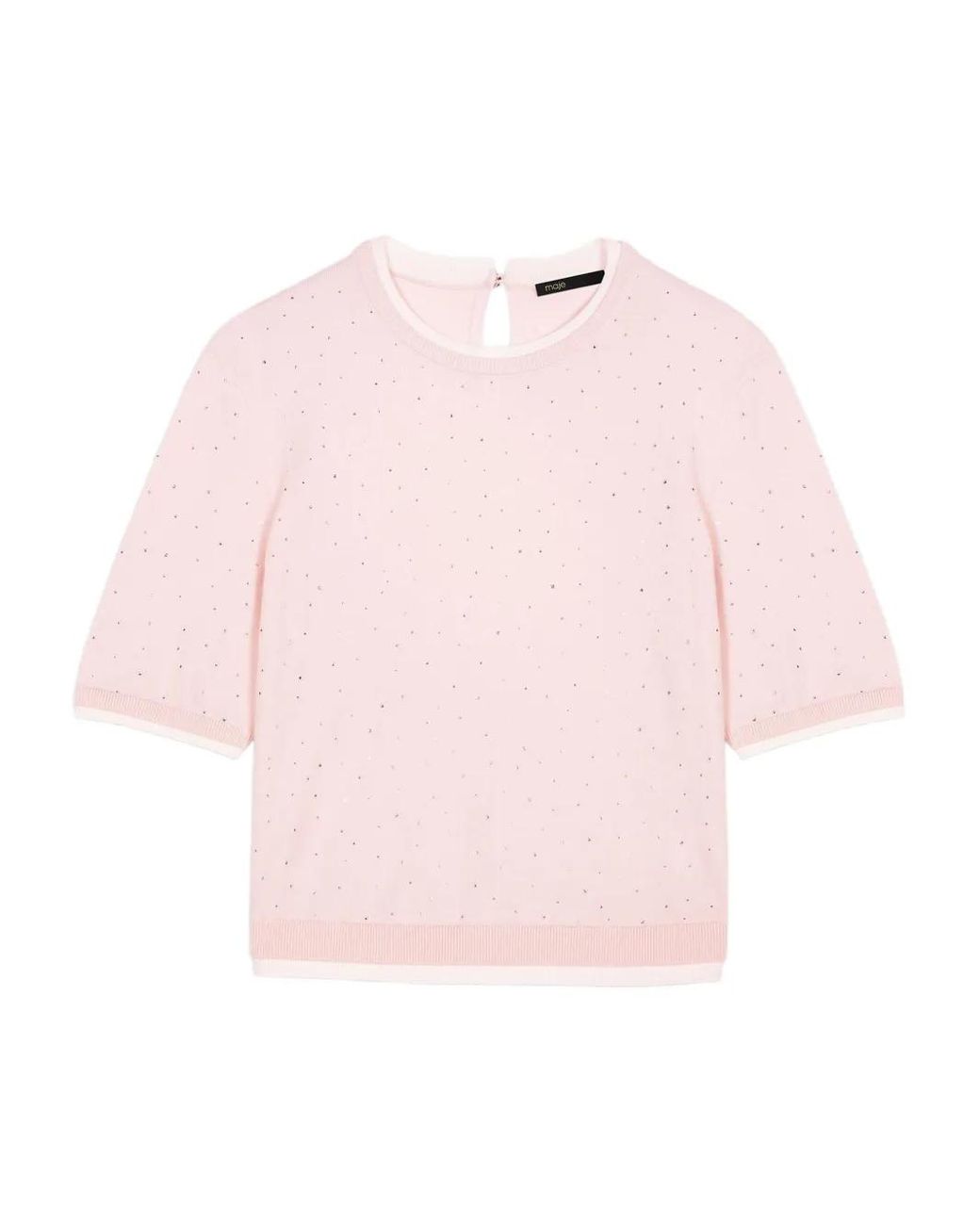 Pink embellished ribbed trim short sleeves round neck back keyhole detail Size: 0. Gender: Female. Material:Wool/Polyamide/Elastane. Colour: pink