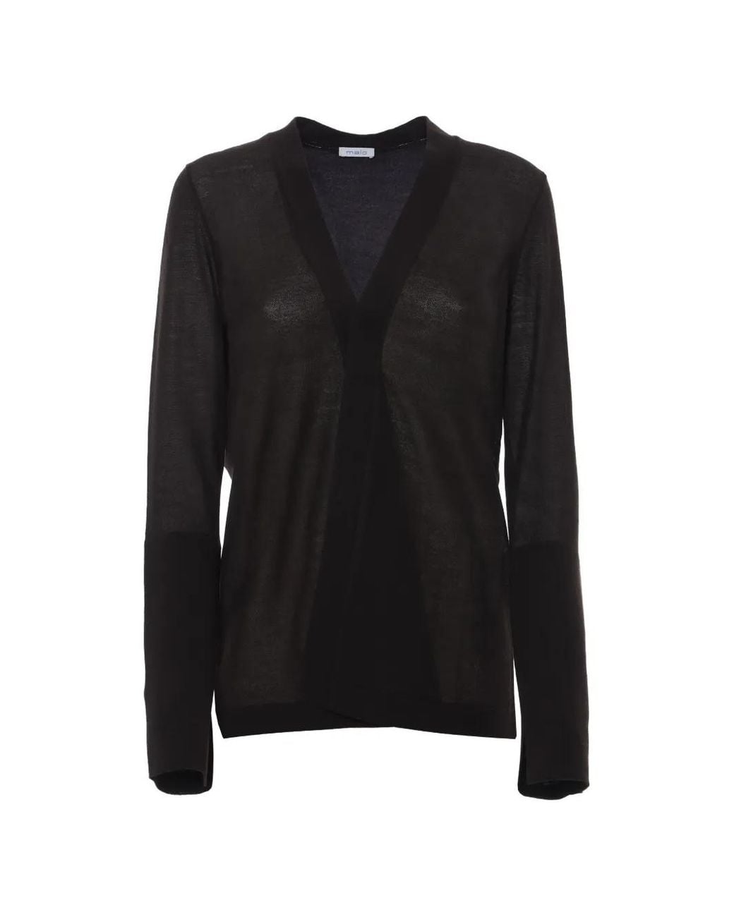 Black V-neck cashmere long sleeves wrap design panelled design Size: S. Gender: Female. Material:Cashmere. Colour: black
